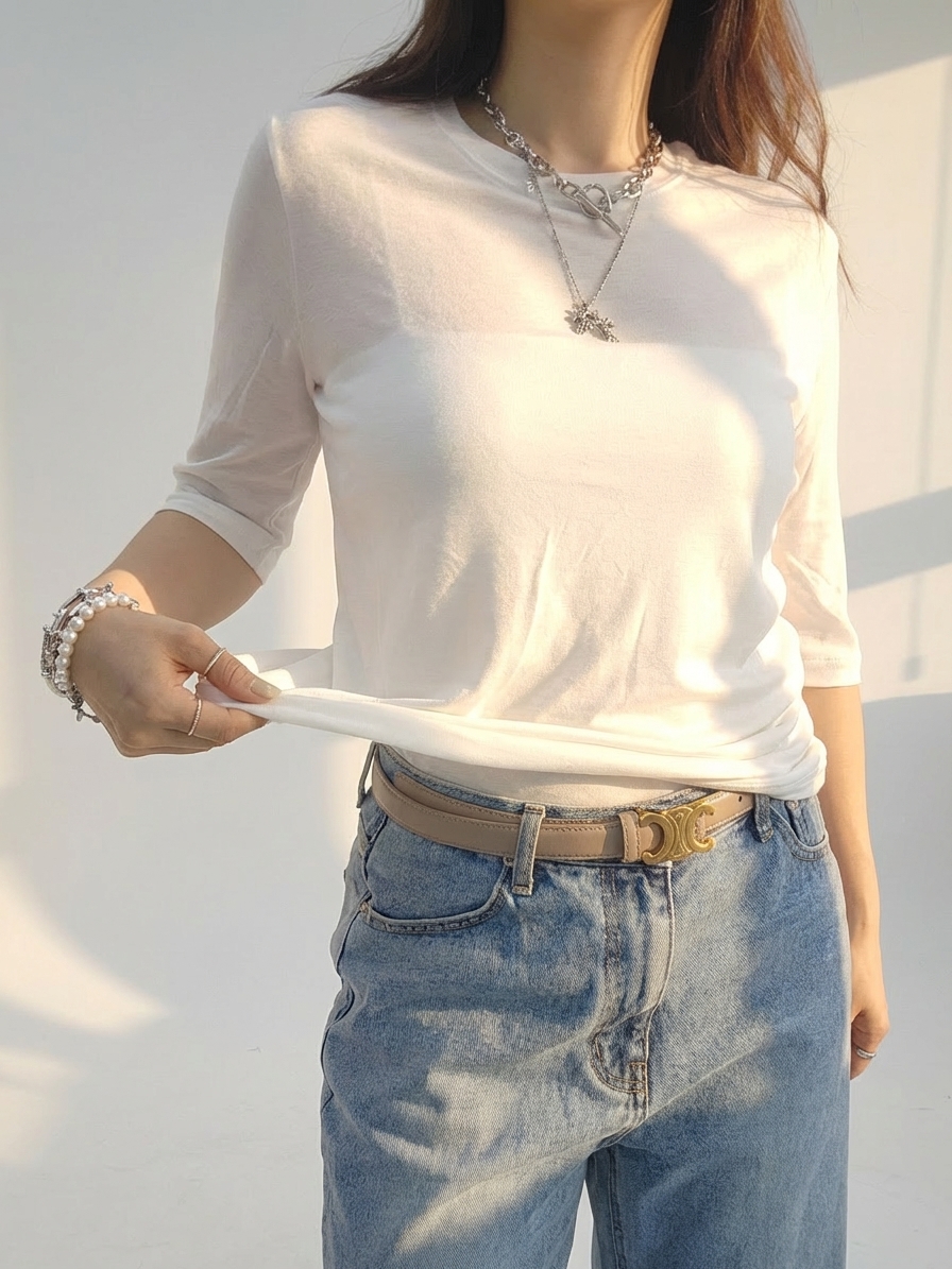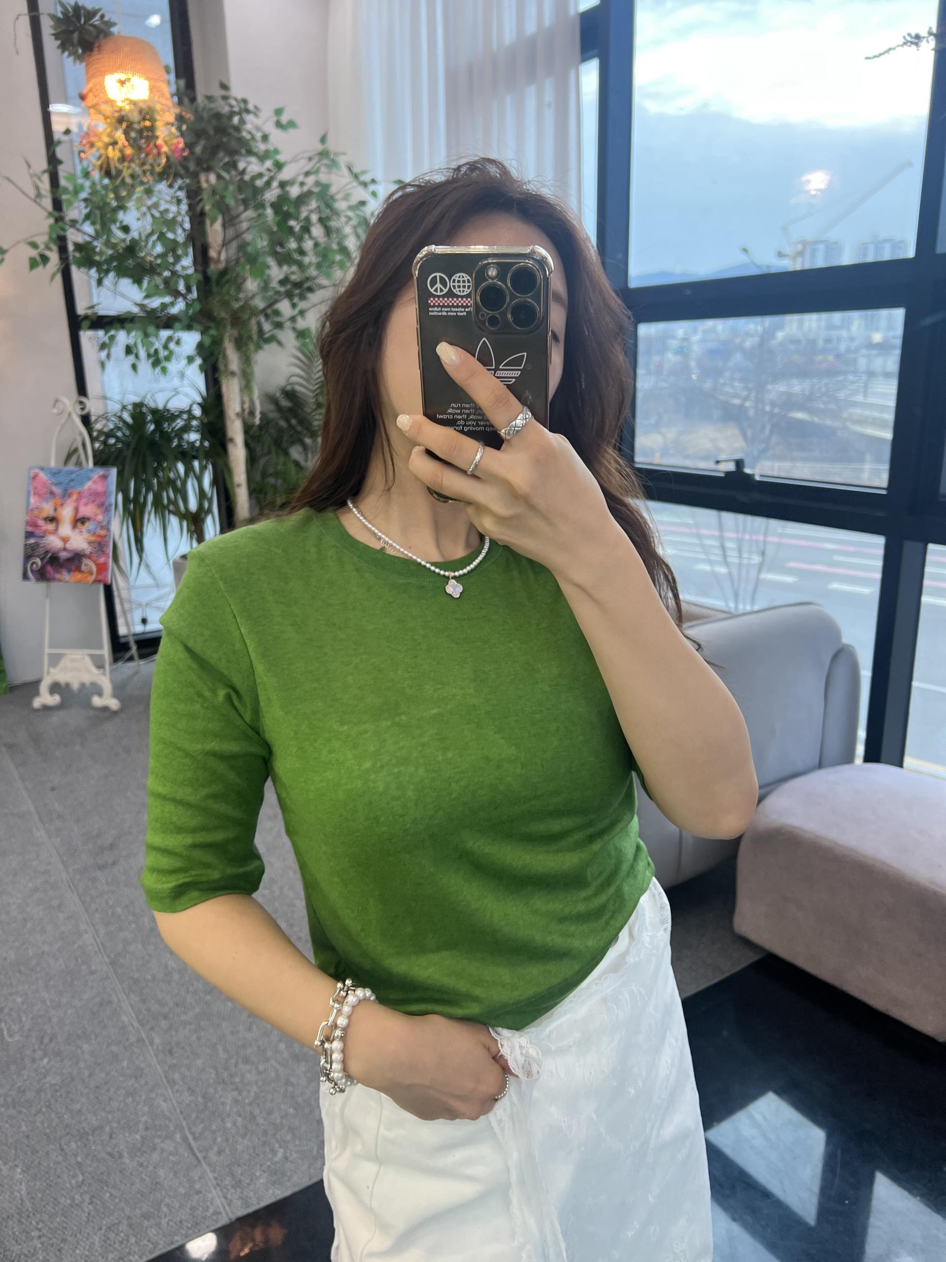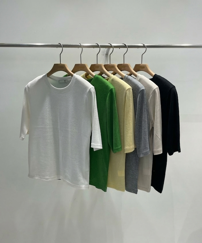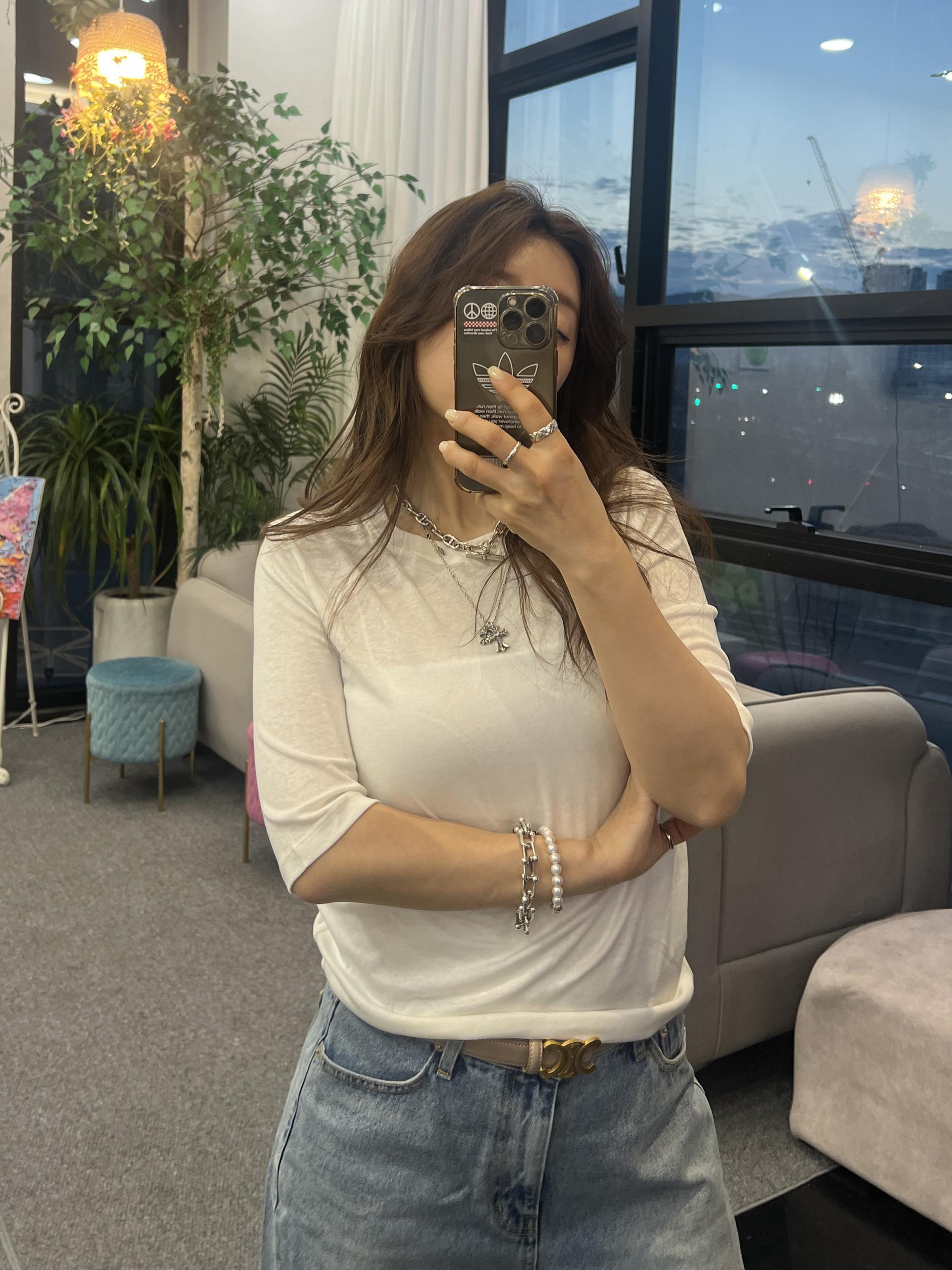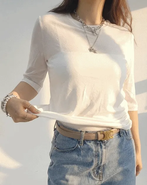 칠부소매라운드 티셔츠